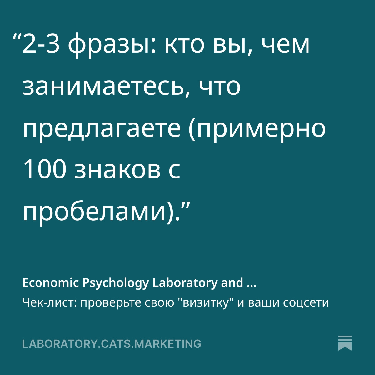 Кроме вашего фото профиля (и обложки, если она предусмотрена в соцсети), люди обычно смотрят на краткое описание.
